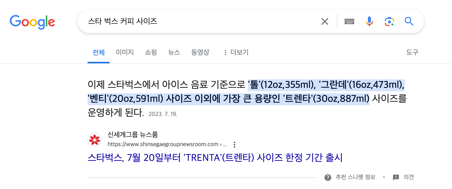| 3. 스타 벅스 사이즈 | 스타벅스, 7월 20일부터 ‘TRENTA’(트렌타) 사이즈 한정 기간 출시 |