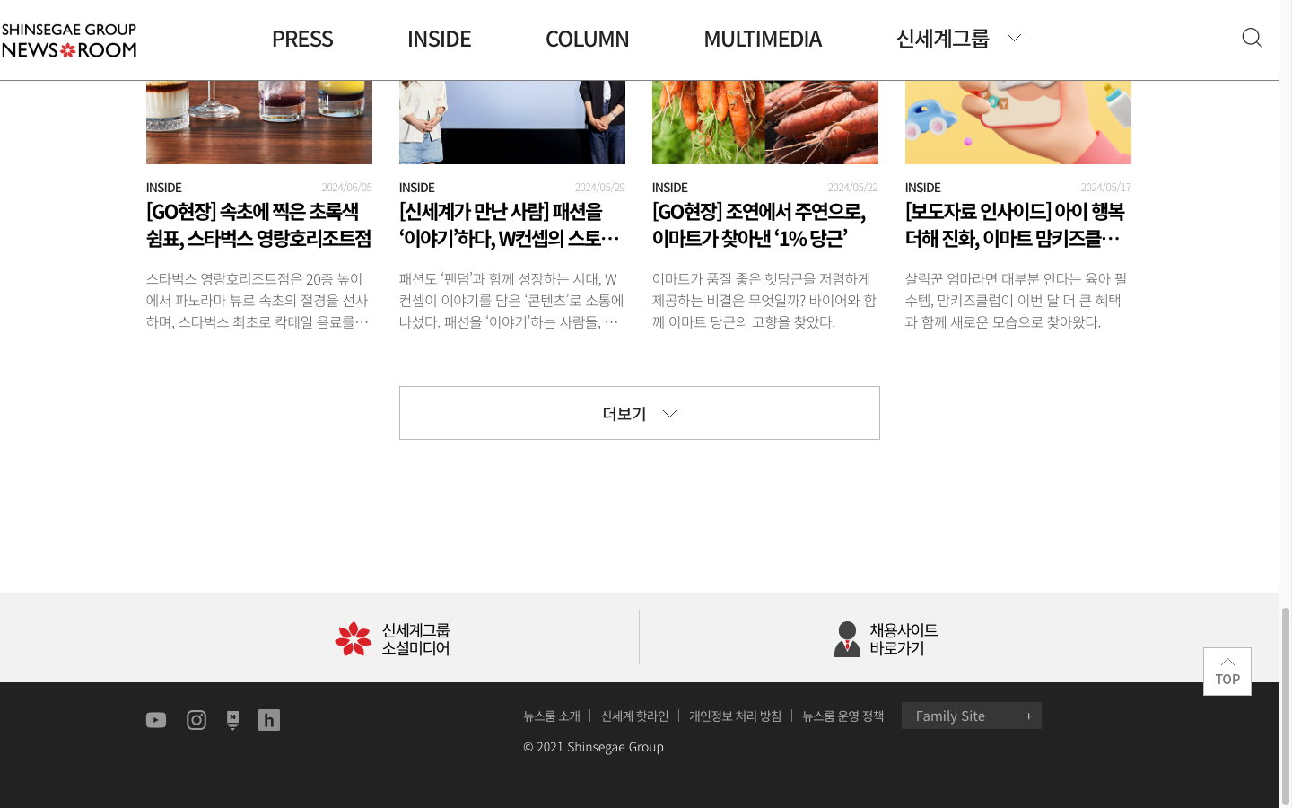 신세계그룹 뉴스룸의 주요 메뉴를 분석해보면, 이 뉴스룸이 어떤 주제로 글을 쓰는지 명확하게 알 수 있습니다.