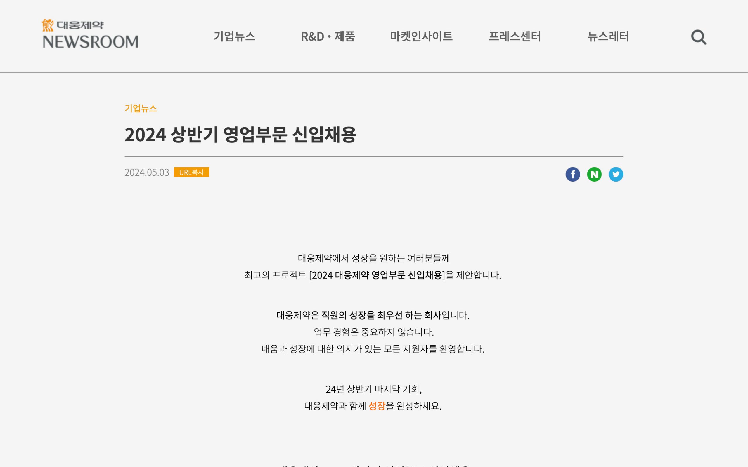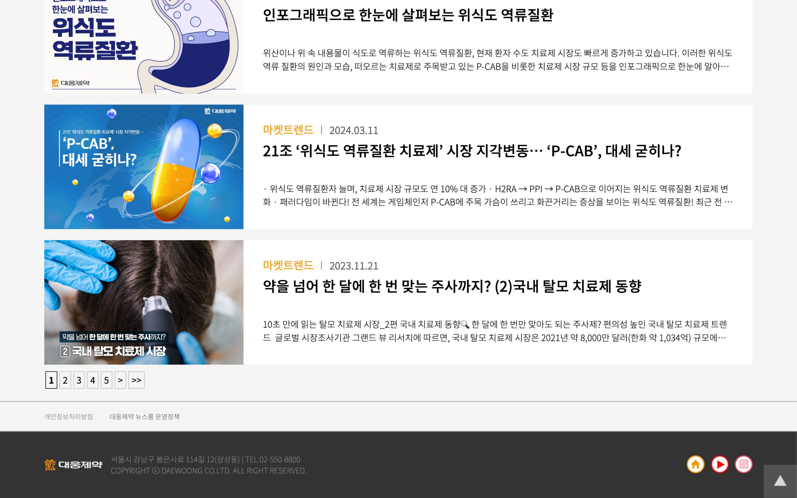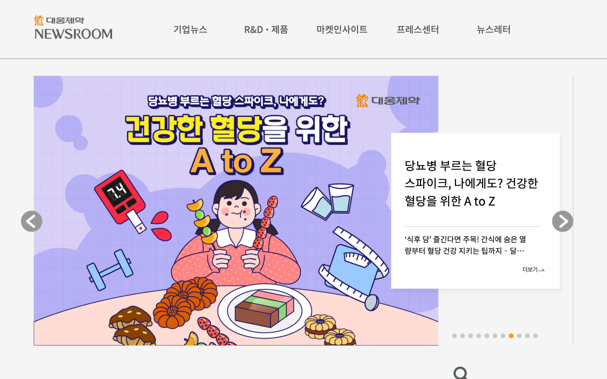 이러한 디자인 요소들은 대웅제약 뉴스룸이 사용자 경험을 최적화하고, 정보를 명확하게 전달하는 데 중요한 역할을 하고 있습니다.