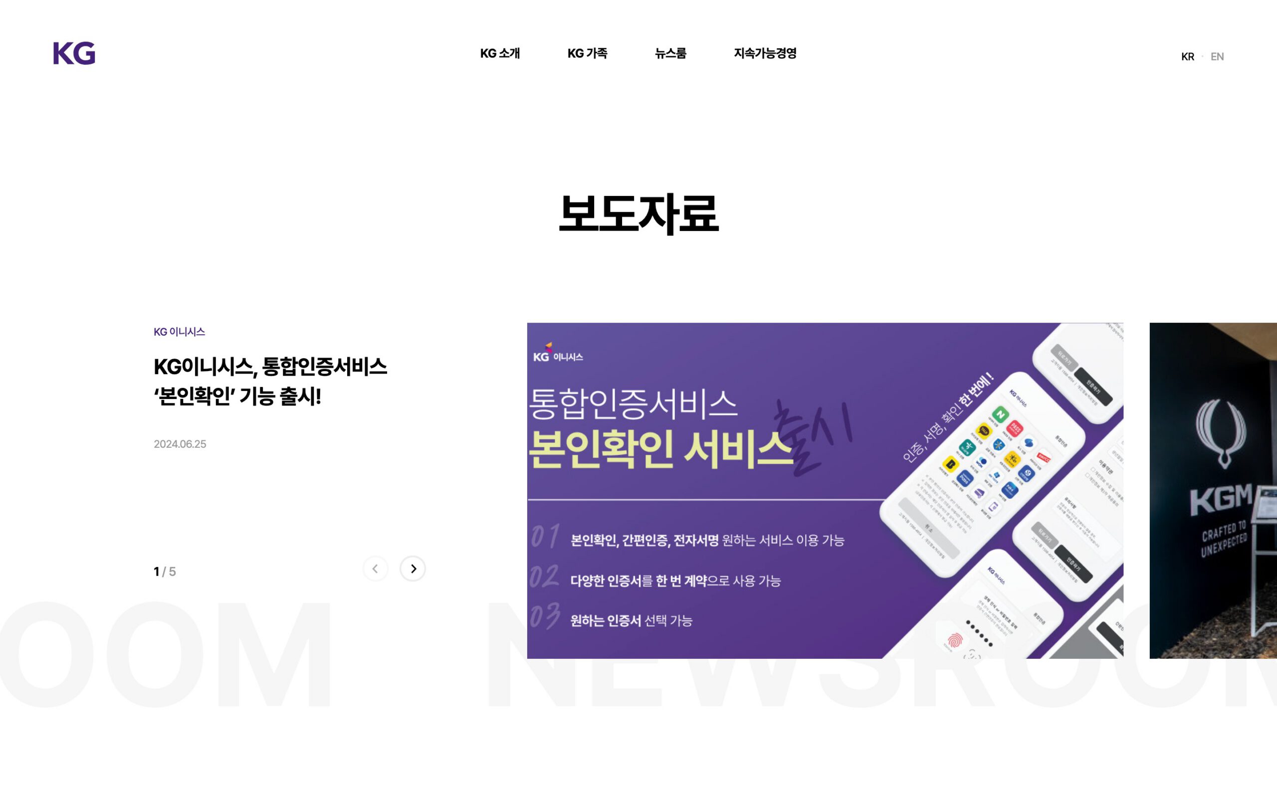 KG그룹의 종합 뉴스룸은 KG모빌리티의 뉴스룸 기능을 수행하며, 크게 보도자료와 소셜미디어 두 가지 주요 섹션으로 나뉩니다.