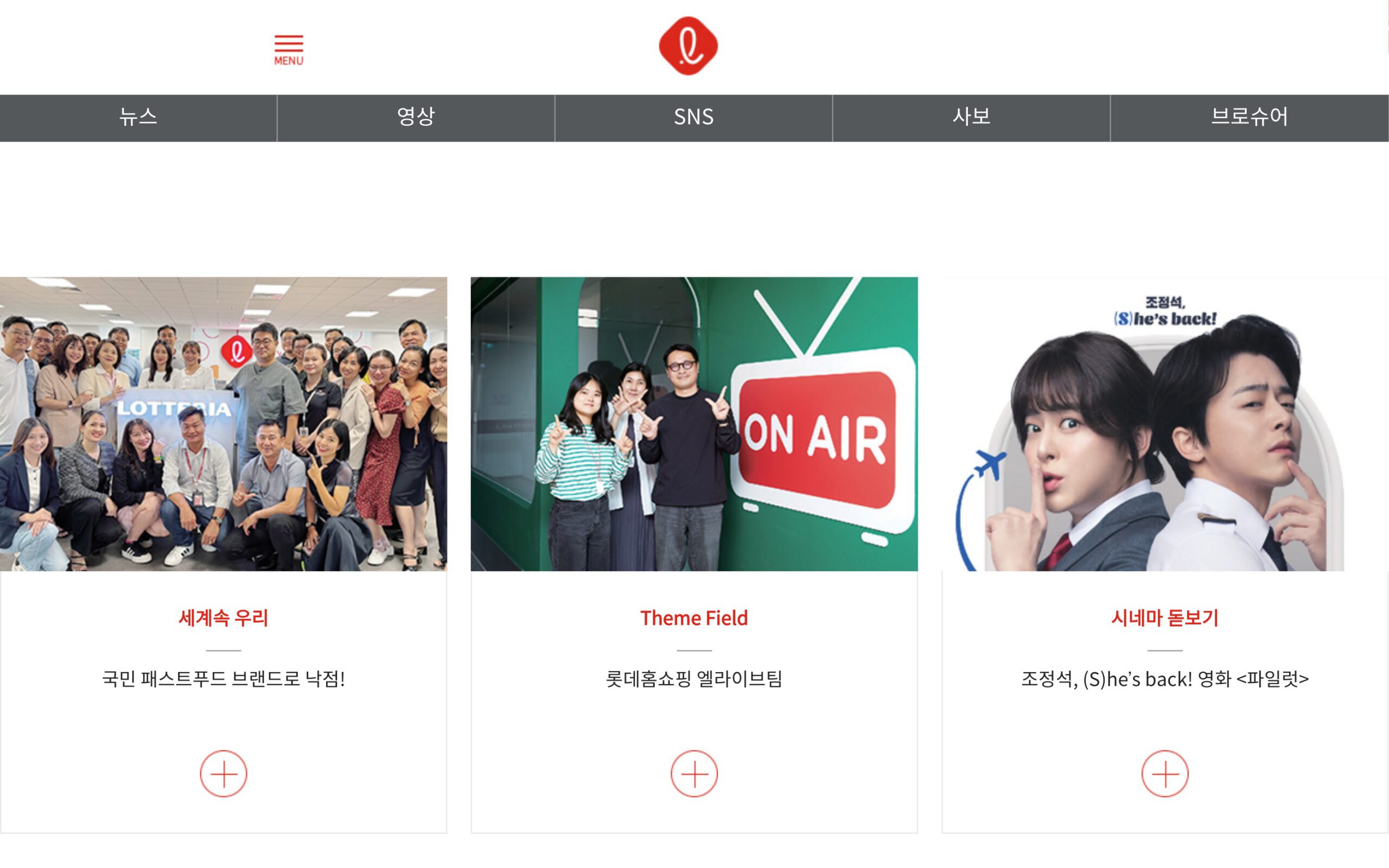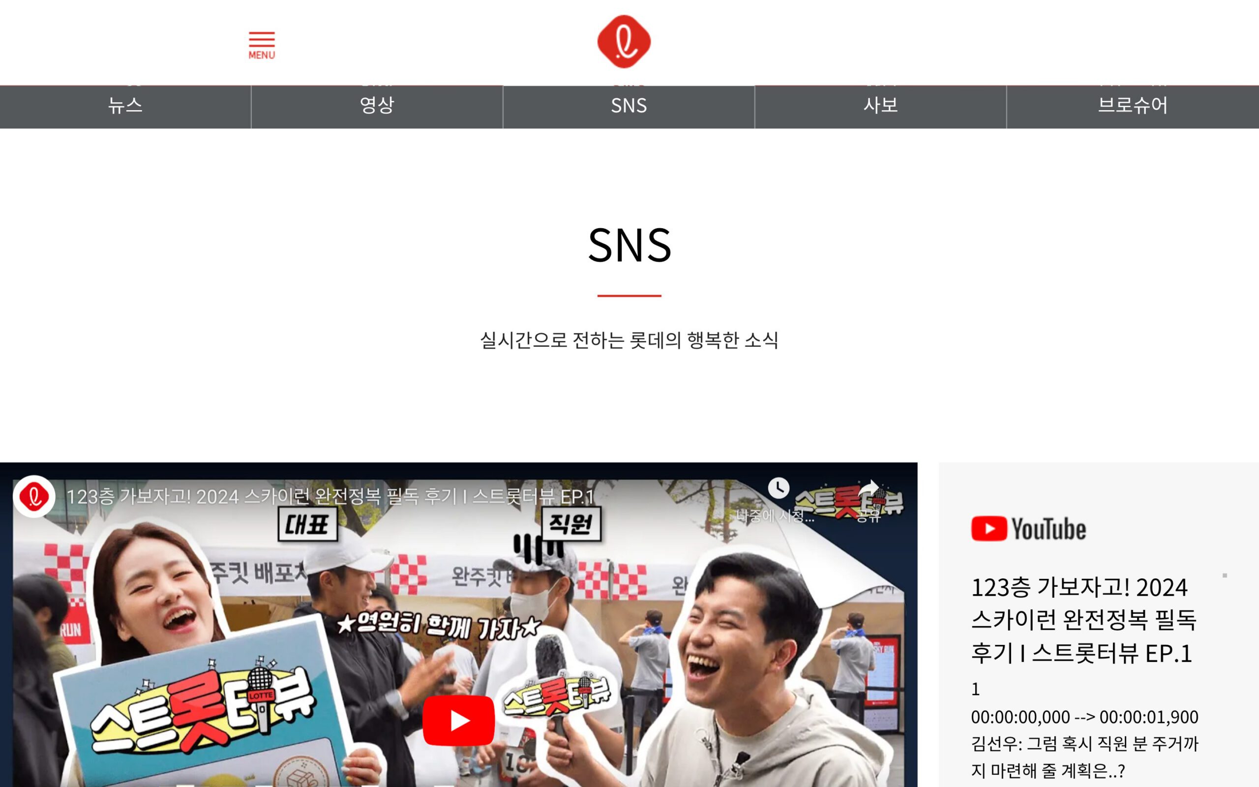 “SNS” 섹션은 롯데의 소셜 미디어 활동을 한눈에 볼 수 있는 공간입니다. 이 섹션을 통해 기업 소식과 이벤트를 더욱 생동감 있게 전달하며, 사용자들이 롯데와의 상호작용을 통해 더 가까이 다가갈 수 있도록 합니다. 롯데는 다양한 소셜 미디어 채널을 통해 실시간으로 소식을 전하고, 사용자와의 적극적인 소통을 이어가고 있습니다.