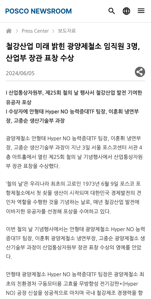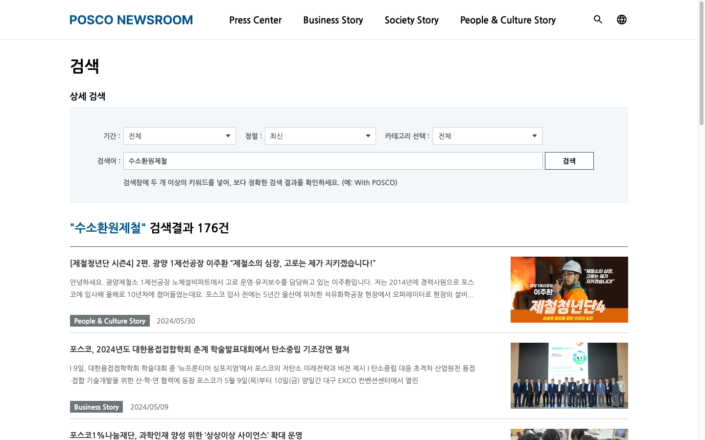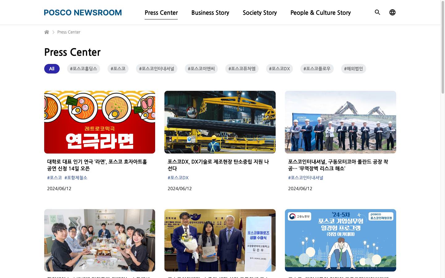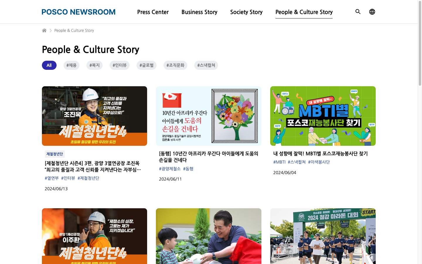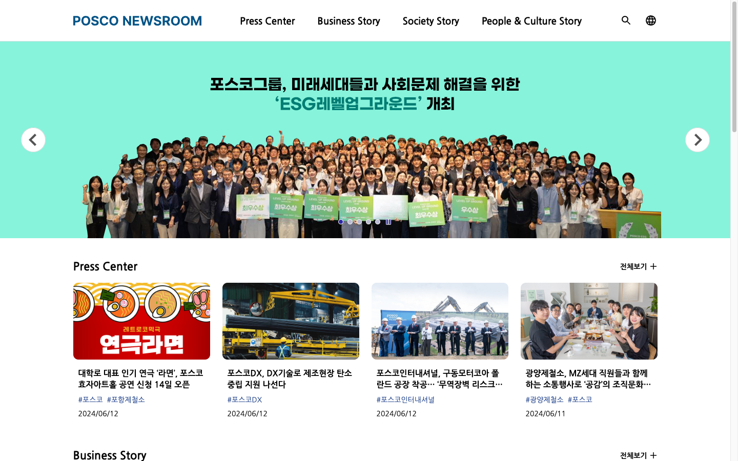 포스코 뉴스룸은 다양한 주제에 걸친 콘텐츠를 제공하며, 이를 통해 포스코그룹의 활동과 성과를 상세히 소개하고 있습니다.